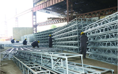 To ensure the quality galvanizing process Golden Towers (Private) Limited has his own Galvanizing Plant to save the time and for complete control of product, with an annual production capacity of 15,000 Metric Tons. The cattle size is 25 feet * 2.5 feet * 2 feet. The unit has an automatic Temperature Control system supported by remote control crane system to dip the angles during the galvanizing process. Average minimum Galvanizing thickness on the main members, plates, joints and internal bracing of structures is 90 microns, or according to the client requirements. Golden Towers (Private) Limited has qualified staff for designing, fabrication and installation of high capacity backbone infrastructure specially: